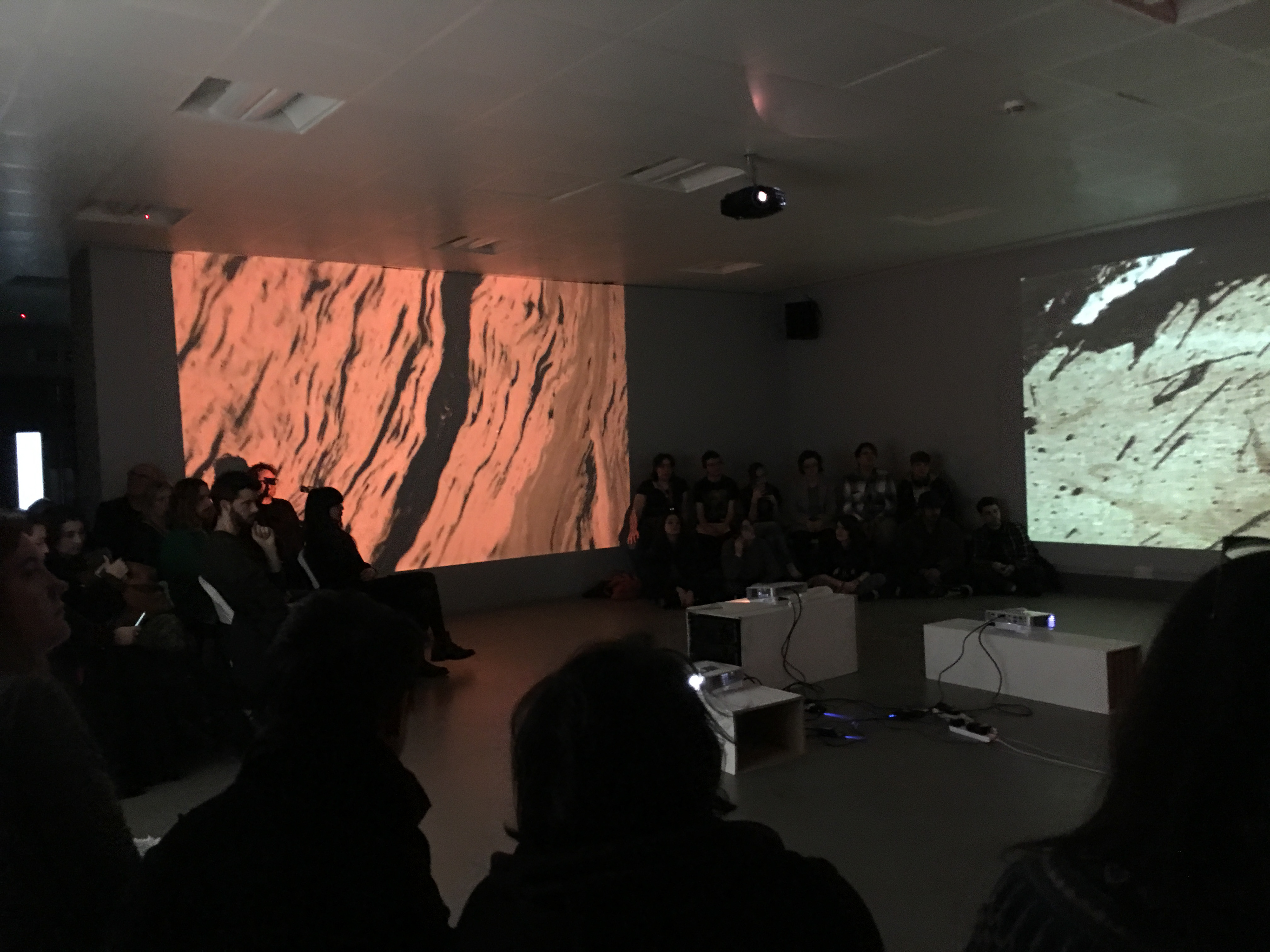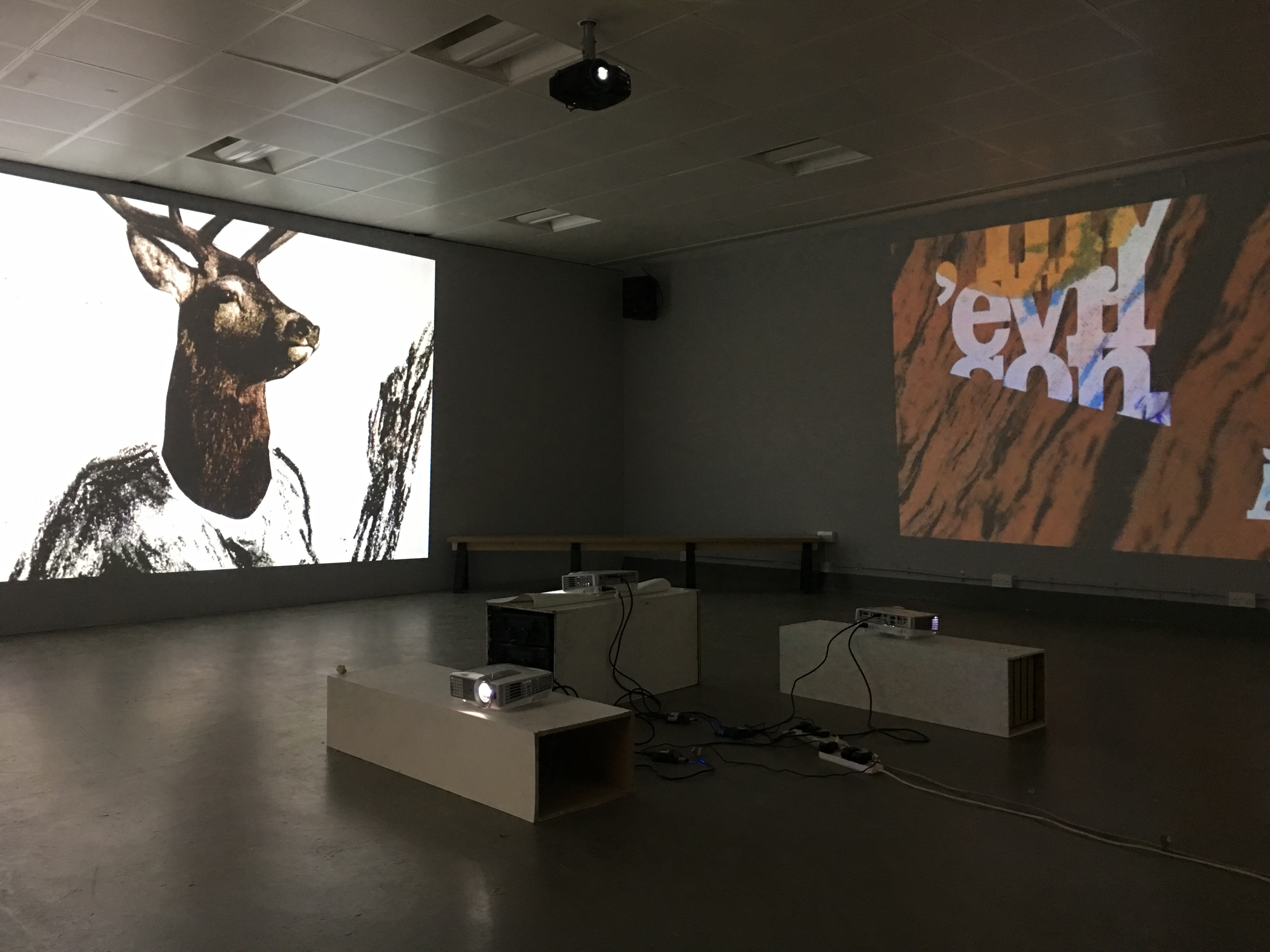 My first solo exhibition, I was given The Kirk Lecture Theatre at UCA Canterbury, (a 4 wall open space). The album Surfer Rosa is 32.50 long which meant editing 4 separate 32.50 video for each of the 4 walls so that people in the space could travel around and see something new but also become immersed by what's on the walls.